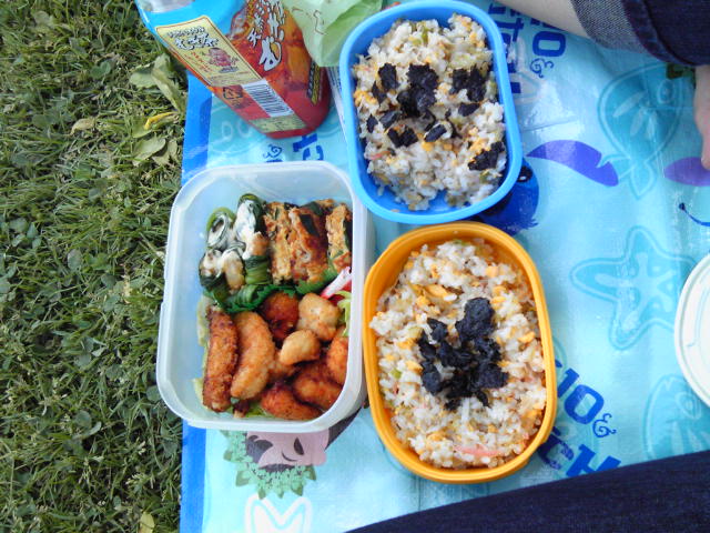 大きな木陰にレジャーシートを敷いて、お弁当を広げました。
