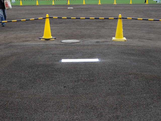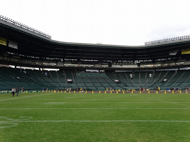 外野からの風景。甲子園ボウルの名残のラインが残ってました。